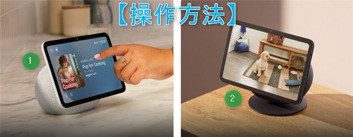 本体の操作方法は製品に向かって話しかける他にも、直接画面をタップする事によるスマホやタブレットのように操作する事が出来ます。