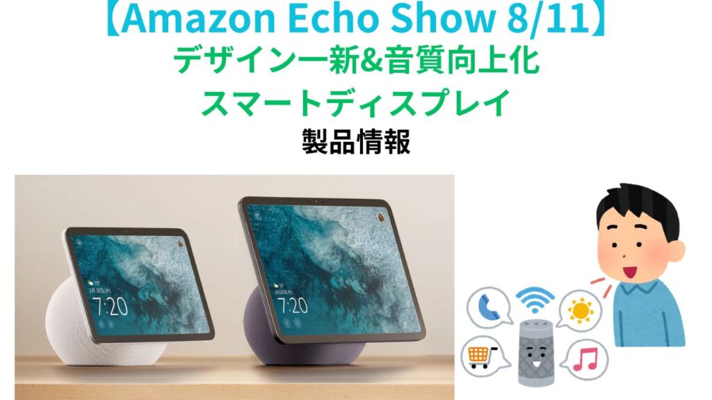 「Amazon Echo Show 8/11(2025年版)」という名称のスマートディスプレイの製品情報に関する記事でした。