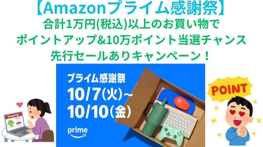 【Amazonプライム感謝祭】合計1万円以上の買物でポイントアップ&10万ポイント当選ありの1週間限定セール開催の件!