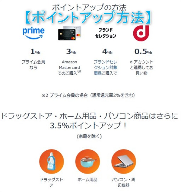 - 【Amazon Mastercardでのお支払いの方】:+最大3.0%(通常還元率の2.0%を含む)