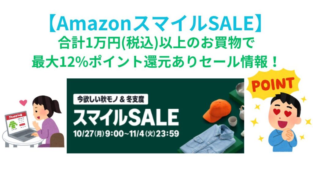 【AmazonスマイルSALE】合計1万円以上の買物で最大12%ポイント還元ありの9日間限定セール情報がこちら!