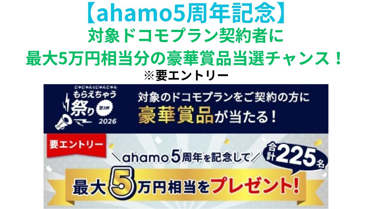 この度「ahamo」が5周年になるのを記念しまして、「じゃじゃんとじゃんじゃんもらえちゃう祭り2026」という名称のプレゼントキャンペーンが実施されているのはご存知でしょうか?