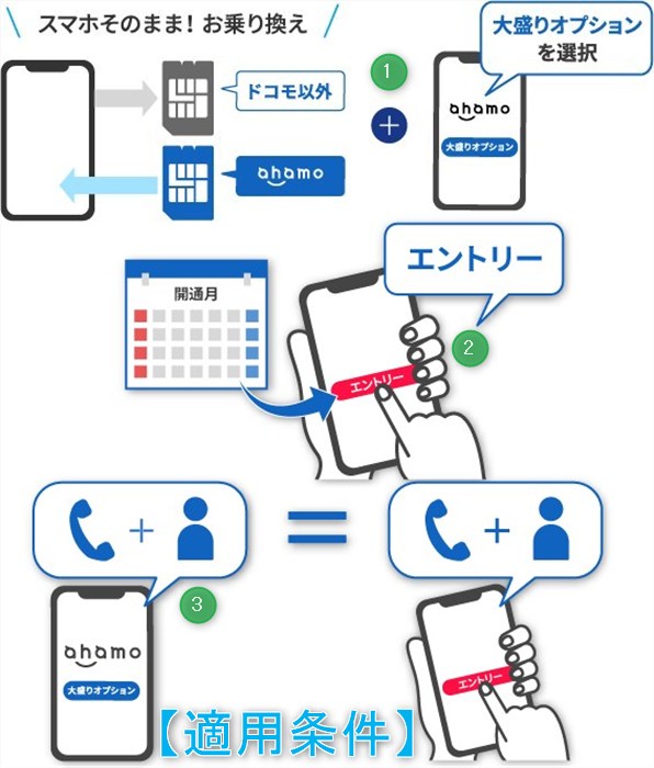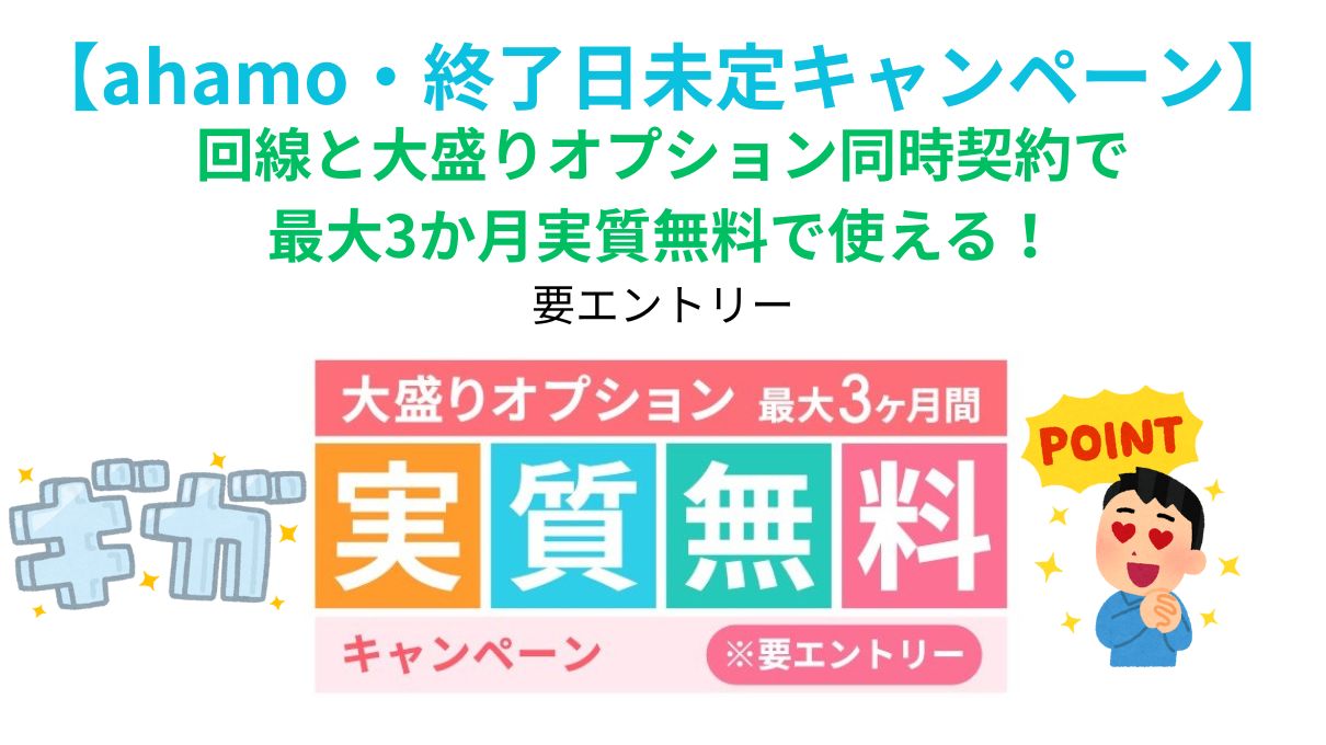 【ahamo】回線と大盛りオプション同時契約で最大3か月実質無料で使えるキャンペーンが終了日未定!