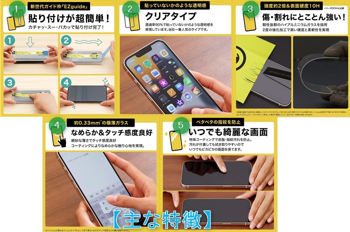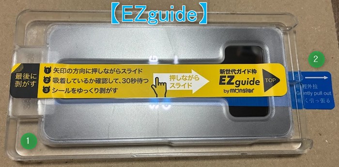 本製品は「EZguide」と呼ばれるガイド枠が同梱されており、わずか数ステップで簡単に貼り付ける事が出来るようになっています。