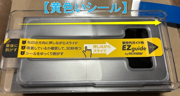 【黄色いシール】記載されている3つの手順通りにシートを剥がしていく!
