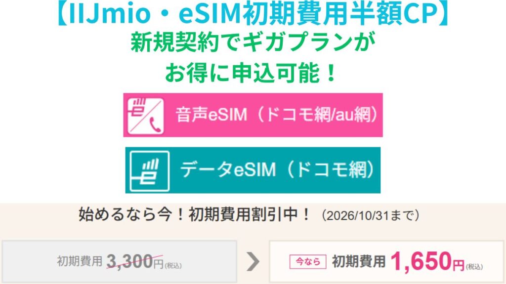 【IIJmio】eSIM初期費用半額キャンペーンでギガプランがお得に申込可能な件!
