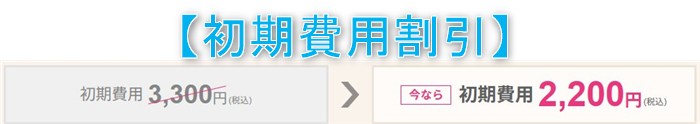 【特典内容】回線申込時の初期費用が税込3,300円から1,100円割引の税込2,200円が自動適用!