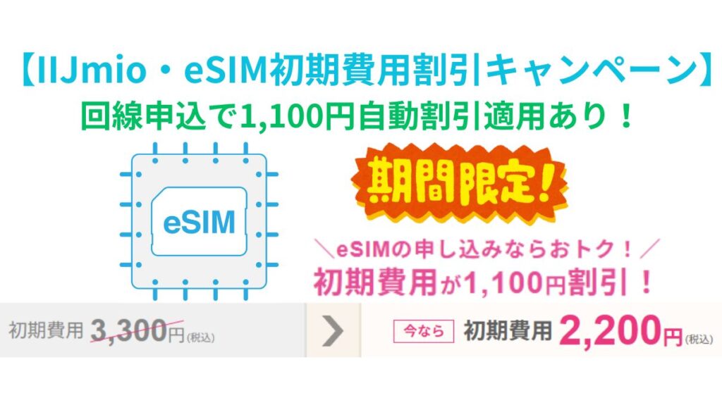 【IIJmio】回線申込で1100円自動割引適用のeSIM初期費用割引キャンペーンとは?