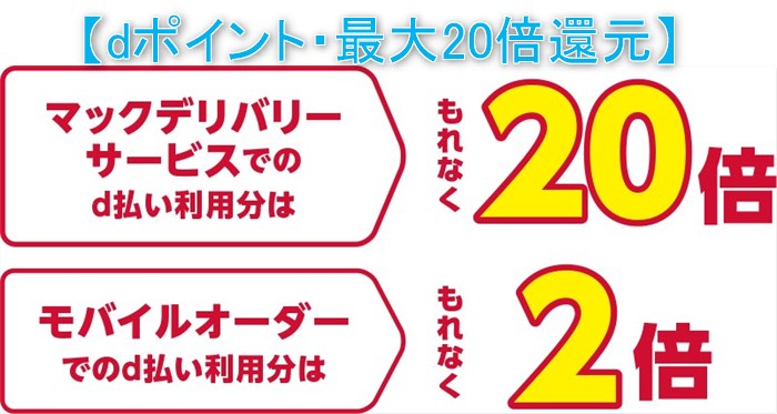 「d払い」をマクドナルドで利用する事で「dポイント・最大20倍還元」ありの期間限定キャンペーン情報に関する記事でした。