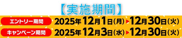 - 【エントリー期間】2025年12月1日(月)~同年12月30日(火)まで!