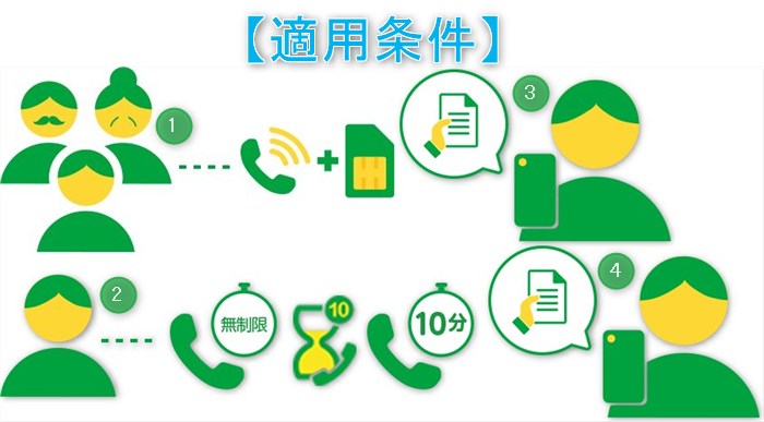 | 4.子回線→親回線 (1回線) | 月間累計で10分以上の通話を行う事 | 国内通話が対象 |