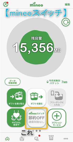 【混雑回避速度制限中の改善化】mineoスイッチ”OFF”で通常速度で利用可能!