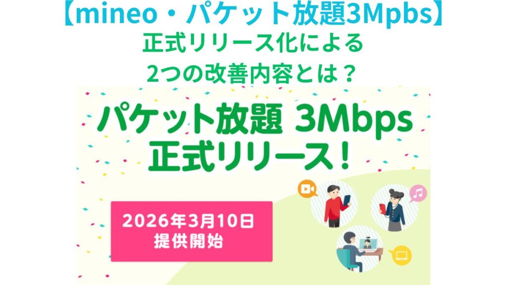 mineoの「パケット放題 3Mbps」では旧サービスと比較してどんな改善点があるのか、