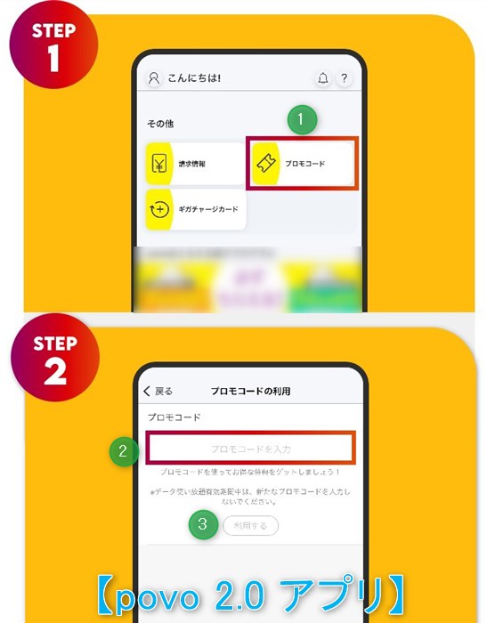 2. 【プロモコードの利用】「プロモコード」の入力後に「利用する」ボタンを押す