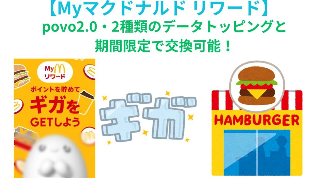 「Myマクドナルド リワード」と呼ばれるプログラムより、「povo 2.0」にて2種類のデータトッピングと期間限定で交換出来るというお得なキャンペーンに関する記事でした。
