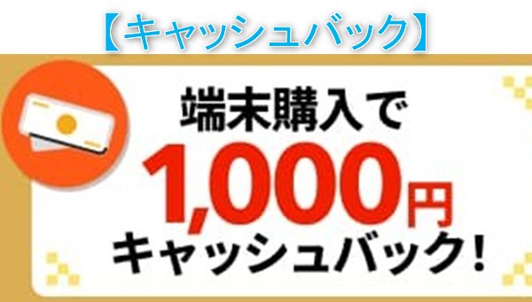 【1,000円キャッシュバック】回線申込時に取扱端末購入でご利用開始月の翌月にキャッシュバックあり!