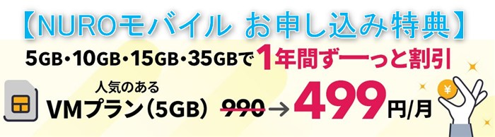 NUROモバイル・お申し込み特典の月額料金と対象プラン(終了日未定)