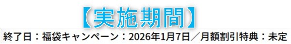 【実施期間】福袋キャンペーンと月額料金割引特典では終了日が異なる!