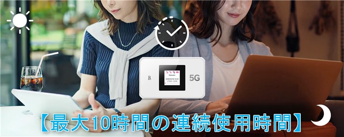 連続通信時間LTE : 約10時間 / 5G (Sub6) : 約9時間