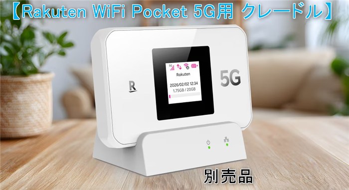 別売品になりますが、「Rakuten WiFi Pocket 5G用 クレードル」という名称の専用グレードルが販売されます。