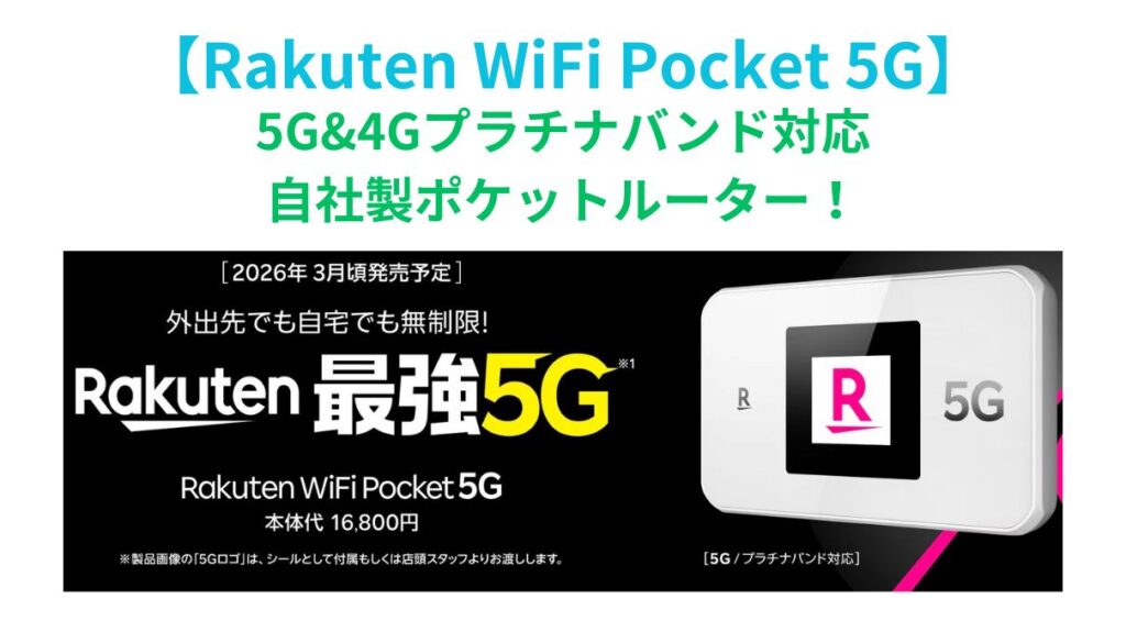 この度2026年3月頃より、「Rakuten WiFi Pocket 5G」という名称の自社製のポケットWi-Fiルーターが新発売される事になりました。