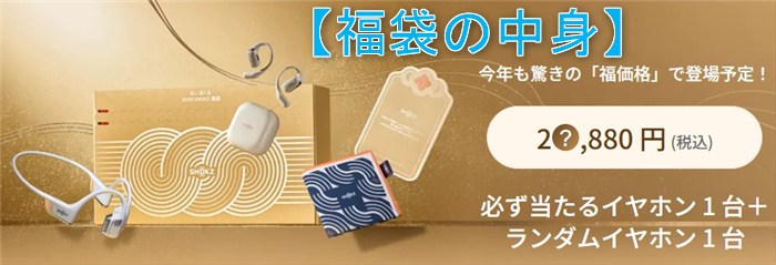 - 【福袋の中身】OPENFIT1台同梱+ランダムイヤホン1台のセットが数量限定で税込2〇,880円!