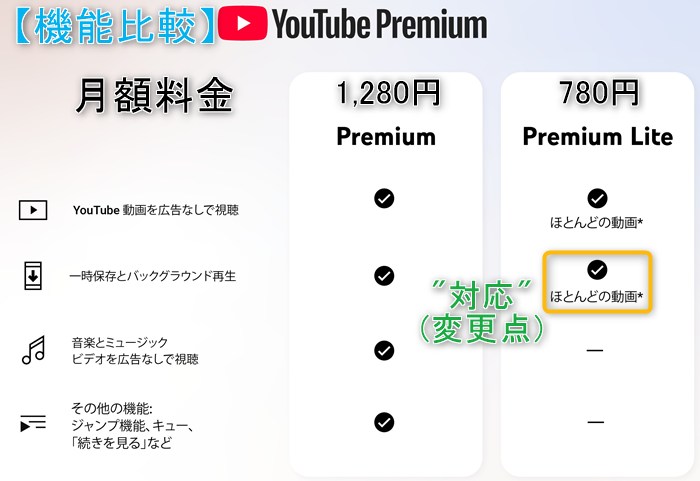 | YouTube Premium | 通常版 | Lite版 |
